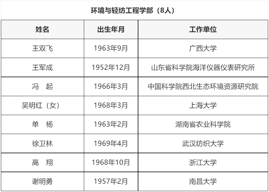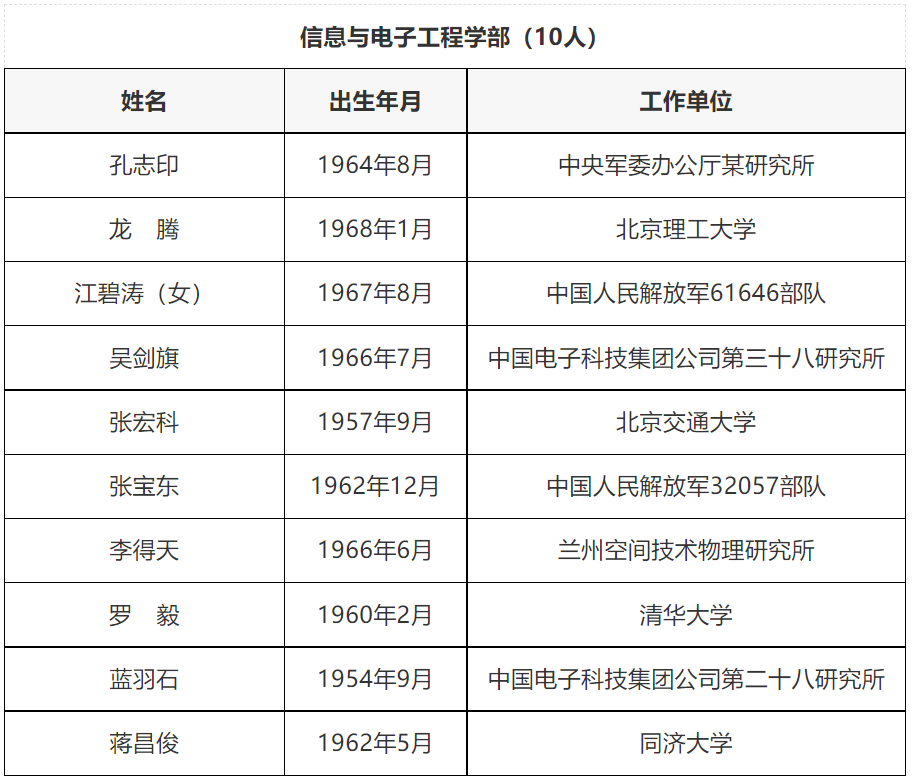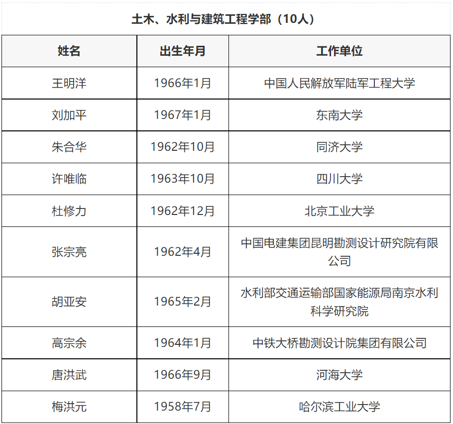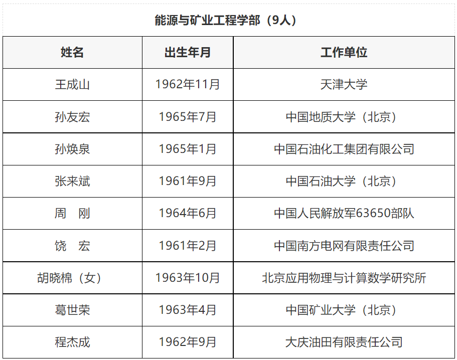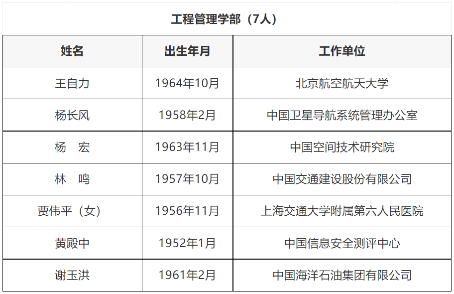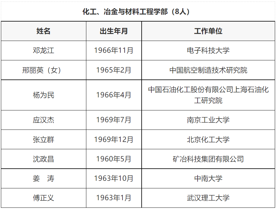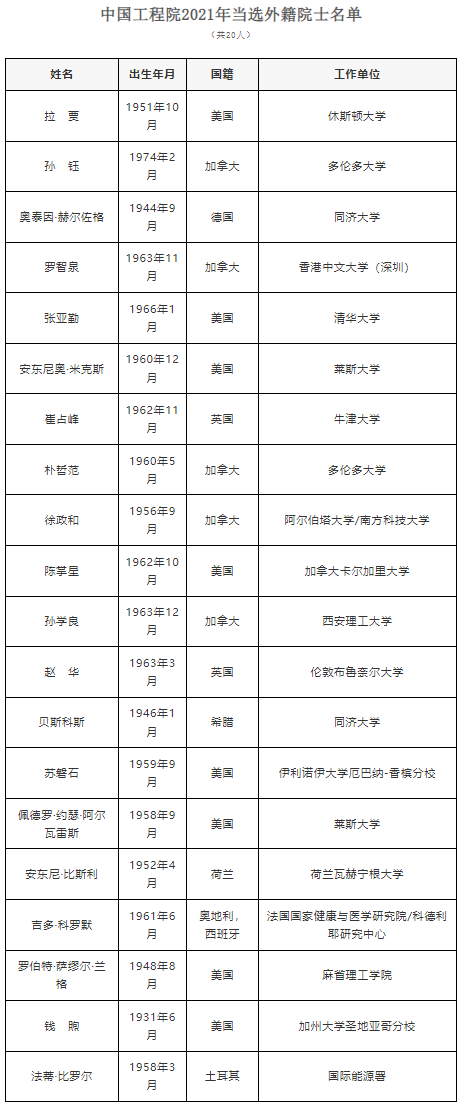 中國工程院2021年當選院士名單