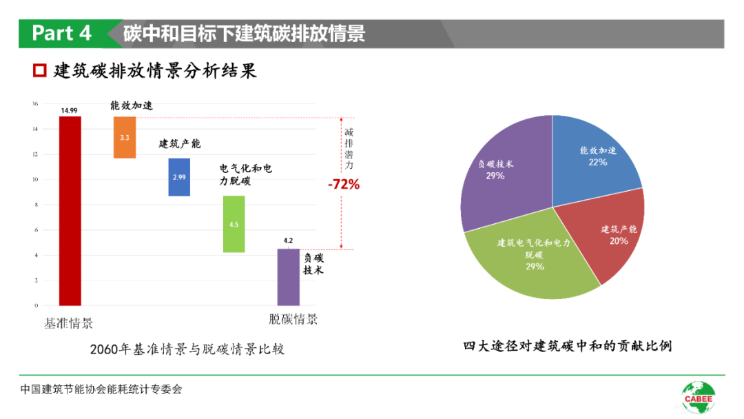 圖4:鋼鐵-化工-氫能一體化網(wǎng)絡(luò)集成智能制造資料來(lái)源:東北大學(xué)鋼鐵前沿技術(shù)研究院,遠(yuǎn)東資信整理三是建筑領(lǐng)域,目前城市碳排放的60%來(lái)源于建筑維持功能本身,構(gòu)建綠色建筑技術(shù)體系、發(fā)展低碳建筑極其重要,其關(guān)鍵是建筑規(guī)劃設(shè)計(jì)、建造、使用、運(yùn)行、維護(hù)、拆除和重新利用全過(guò)程的低碳控制優(yōu)化。如在建造環(huán)節(jié),可利用屋頂光伏發(fā)電技術(shù),實(shí)現(xiàn)自然光和燈光照明有效整合,可通過(guò)建造無(wú)動(dòng)力屋頂通風(fēng)設(shè)備,調(diào)節(jié)風(fēng)流風(fēng)速并帶動(dòng)風(fēng)機(jī)發(fā)電;在使用環(huán)節(jié),可通過(guò)種植屋頂花草建造“綠色屋頂”,不僅可達(dá)到降溫效果節(jié)省空調(diào)電力,還能吸收大氣污染物;在拆除環(huán)節(jié),可通過(guò)有效回收利用建筑廢棄物,防止發(fā)生二次污染。根據(jù)中國(guó)建筑節(jié)能協(xié)會(huì)發(fā)布《中國(guó)建筑能耗研究報(bào)告(2020)》?!堆芯繄?bào)告》對(duì)建筑全過(guò)程能耗和碳排放的測(cè)算方法、數(shù)據(jù)分析以及碳中和目標(biāo)下建筑碳排放情景進(jìn)行了介紹。《研究報(bào)告》顯示,2005-2018年期間建筑全過(guò)程能耗比重呈現(xiàn)上升趨勢(shì),碳排放比重呈現(xiàn)下降趨勢(shì)。2000-2018年全國(guó)能耗重心南移0.9度(緯度),碳排放重心南移1.1度(緯度),移動(dòng)趨勢(shì)較為明顯。