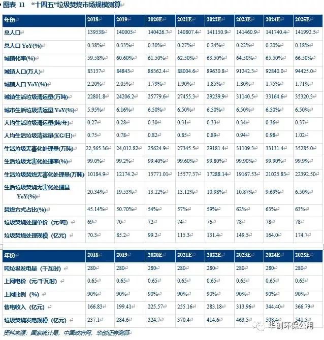 根據(jù)我們的假設(shè),可推算到2022年,生活垃圾無害化處理量可達(dá)1.7億噸,2025年可達(dá)2.2億噸,以2020年中標(biāo)項(xiàng)目均價(jià)72元/噸和處理單價(jià)0.65元/度的上網(wǎng)電價(jià)計(jì)算,2025年垃圾焚燒處理規(guī)模將達(dá)541億元,市場(chǎng)空間仍大。