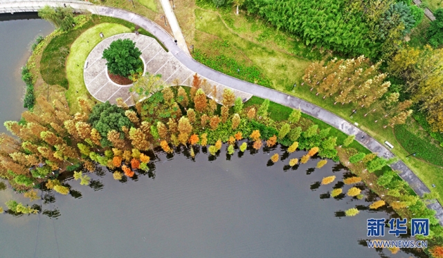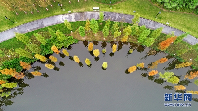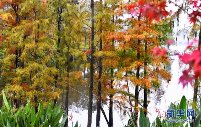 近日,重慶涪陵銅鼓湖公園披上多彩冬裝,紅、橙、黃、綠的植被繽紛交錯(cuò),微風(fēng)吹過(guò),樹(shù)影倒映湖面,蕩起層層漣漪。新華網(wǎng)發(fā)(黃河 攝)