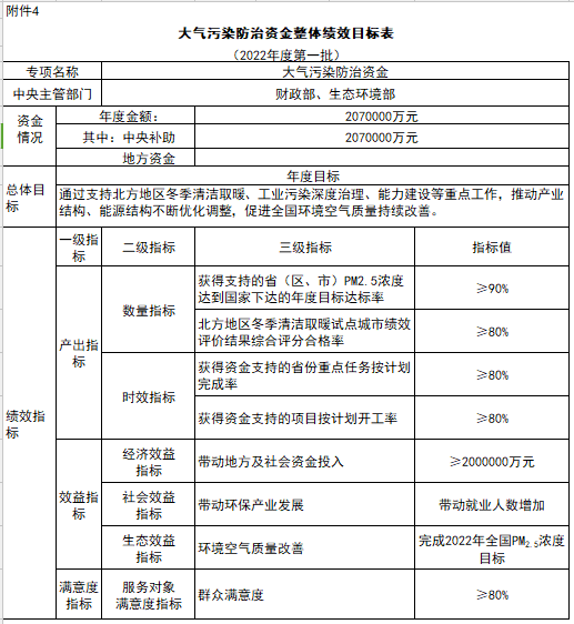 4.大氣污染防治資金整體績(jī)效目標(biāo)表
