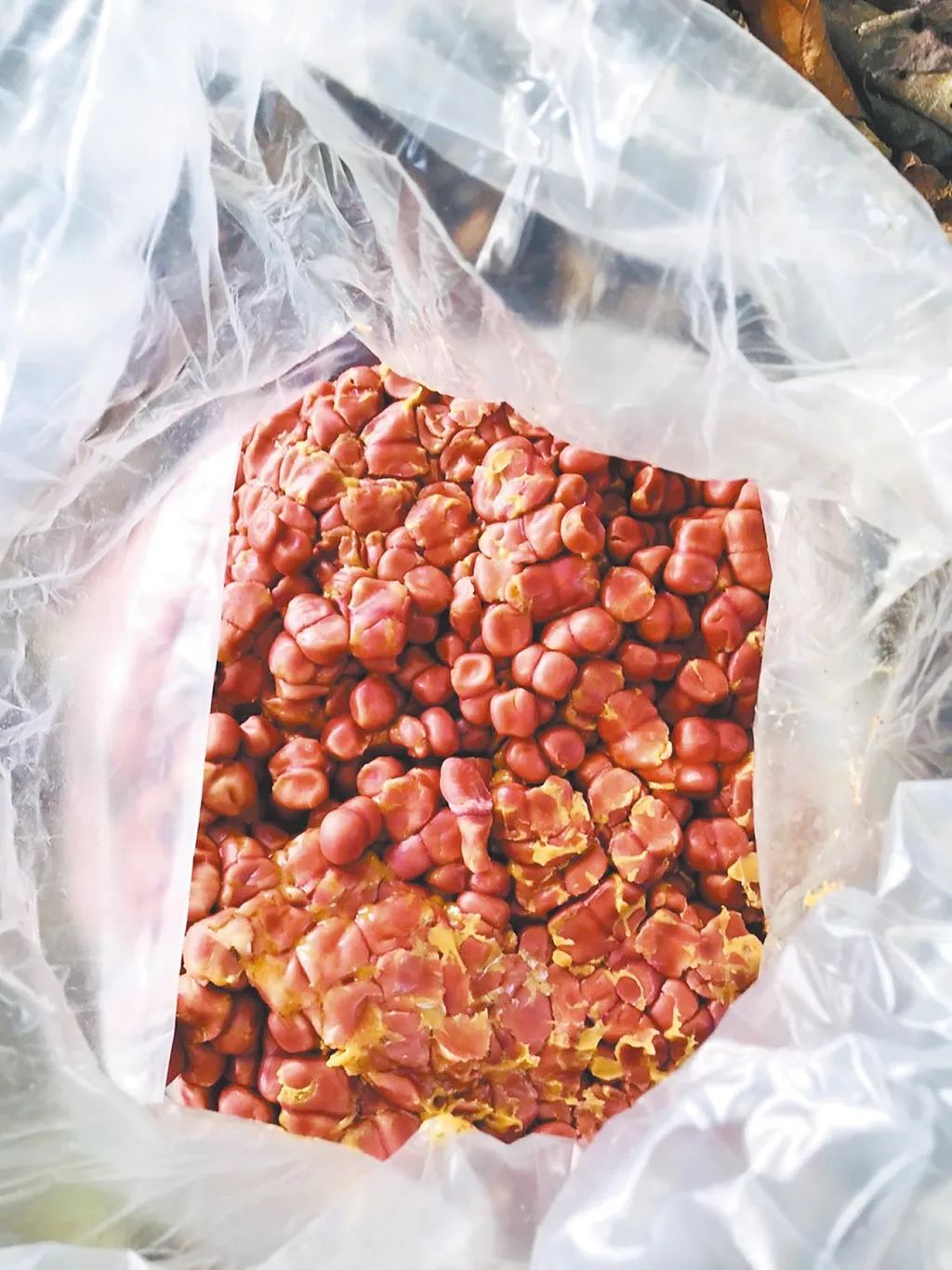 圖為嘉義縣巡查過(guò)程中,發(fā)現(xiàn)作為豬飼料的曼妥思糖果廢料。