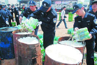 不光是假白酒、假啤酒,包括已經(jīng)過期的啤酒,也在集中銷毀之列。