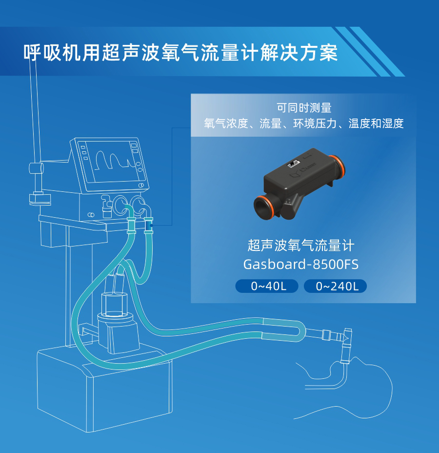 四方光電在健康醫(yī)療領(lǐng)域推出的Gasboard-8500FS超聲波氧氣流量計(jì),可同時(shí)檢測(cè)氧氣的濃度、流量、壓力、溫度和濕度等指標(biāo),并通過(guò)串口或模擬信號(hào)輸出。傳感器具有生命周期內(nèi)無(wú)零點(diǎn)漂移、響應(yīng)快速、穩(wěn)定性好、精度高及壽命長(zhǎng)等優(yōu)勢(shì),接口按照ISO 5356設(shè)計(jì),采用密封圈方式,更好的滿足客戶的安裝使用需求。目前Gasboard-8500FS流量可達(dá)240L/min,滿足呼吸機(jī)、麻醉機(jī)、高流量濕化治療儀等呼吸醫(yī)療設(shè)備的應(yīng)用需求。