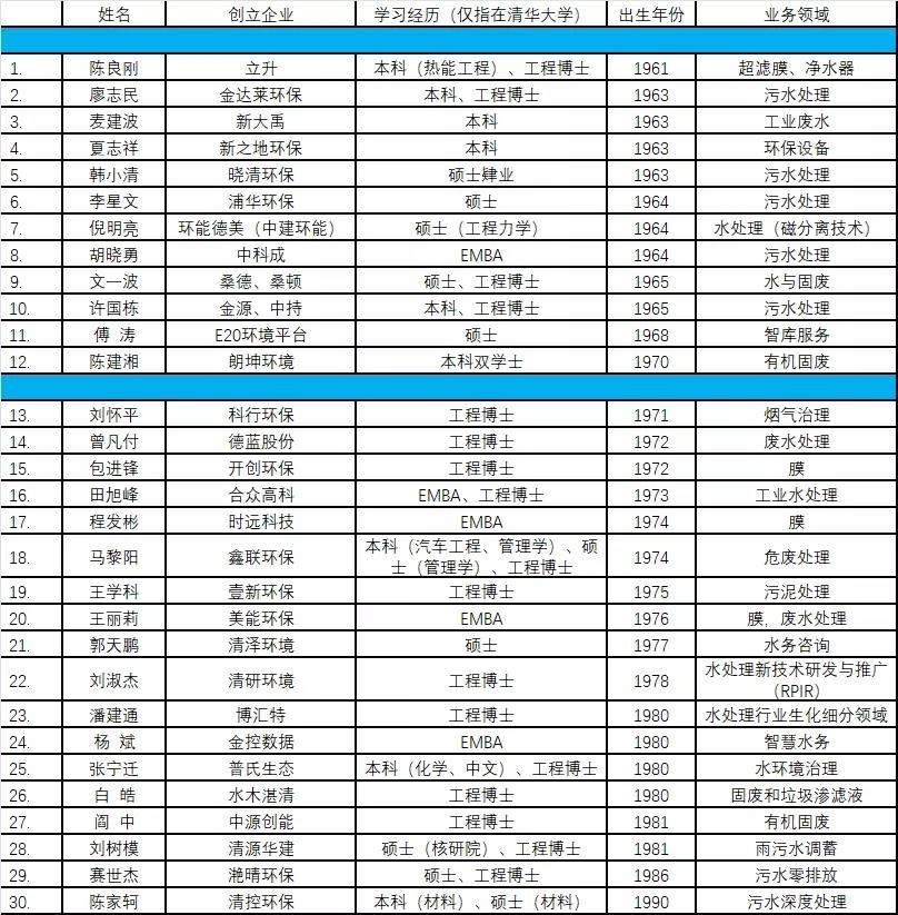 另外也有一批畢業(yè)于清華大學(xué)其他院系的環(huán)境產(chǎn)業(yè)創(chuàng)業(yè)者。