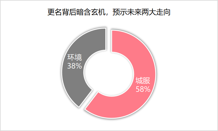 這些企業(yè)更名的共同點在于都在去傳統(tǒng)烙印,要么是去“物業(yè)”,要么去“環(huán)衛(wèi)”,緊跟時代發(fā)展步伐,在“城市服務(wù)”及“環(huán)境科技”時代新語境背景下尋找新歸屬。
