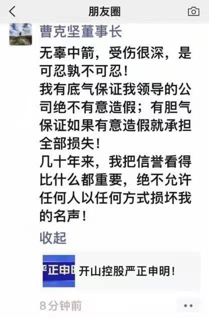 ▼開山股份董事長曹克堅的微信朋友圈。圖片來源:網(wǎng)絡