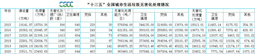 2020年城鄉(xiāng)統(tǒng)計年鑒已發(fā)布,“十三五”數(shù)據(jù)也隨之出爐?!笆濉睍r期是生態(tài)環(huán)保工作交出歷史最靚成績單的五年,因此,環(huán)境商會計劃通過統(tǒng)計年鑒數(shù)據(jù)的整理展示“十三五”生態(tài)環(huán)保行業(yè)建設發(fā)展情況。本文主要圍繞全國城市垃圾處理設施建設情況展開。