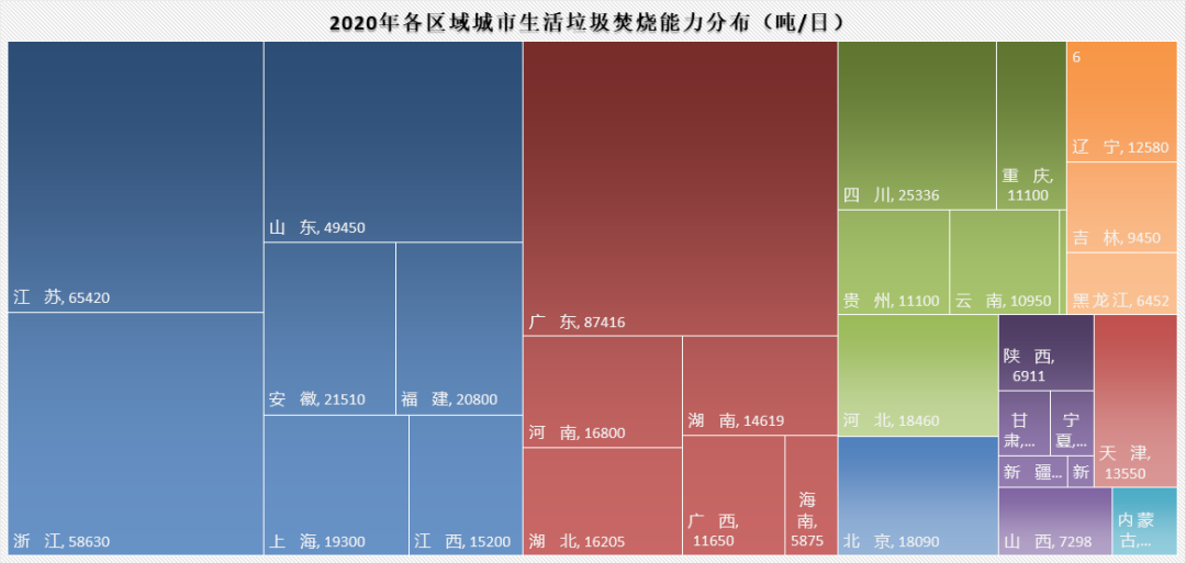 廣東、江蘇、山東、浙江2020年GDP位列全國四強,經(jīng)濟實力肉眼可見,經(jīng)濟發(fā)展刺激環(huán)保需求,也帶來有條件實現(xiàn)環(huán)境設施建設的大發(fā)展。以這四個省市為代表的的華東和華南地區(qū),不僅在城市固廢處理方面能力相對突出,城市污水處理設施建設也領跑全國,是我國生態(tài)環(huán)境治理的高地。硬幣兩面,看未來的話,這些省市城市范圍內新建項目空間可能相對有限,需要挖掘存量項目機會。以江蘇省“十三五”垃圾焚燒建設為例,“十三五”時期,江蘇省城市生活垃圾處理設施較“十二五”新增15座,日處理能力翻了一倍,特別是2018年后,增幅明顯,這與《江蘇省環(huán)境基礎設施三年建設方案(2018-2020年)》印發(fā),組織實施一系列重點工程有關。按照《江蘇省“十四五”生態(tài)環(huán)境保護規(guī)劃》,“十四五”全省無害化能力僅計劃新增2萬噸/日,餐廚廢棄物處理能力計劃新增2000噸/日。