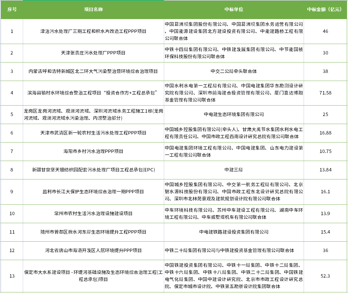 你一定沒注意!2021年以來“中”字頭已中標13個10億+環(huán)保項目