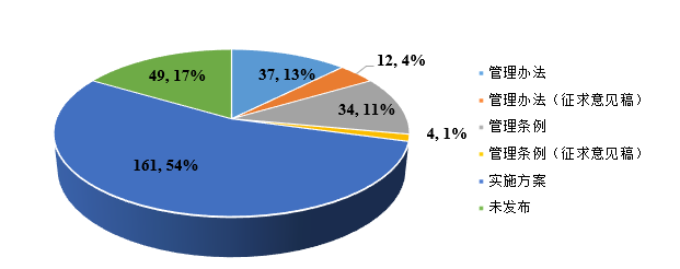 生活垃圾分類正由點到面逐步推開。據(jù)E20研究院觀察,截止到目前為止,297個地級以上城市其中有49個城市出臺垃圾分類管理辦法(其中12個城市處于征求意見稿階段),38個城市出臺垃圾分類管理條例(其中4個城市處于征求意見稿階段),161個城市公布垃圾分類實施方案,49個城市目前尚未公布相關(guān)法律法規(guī)制度,制度出臺城市占比達(dá)84%。