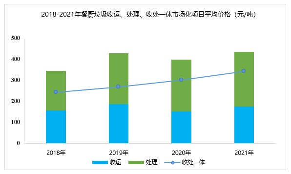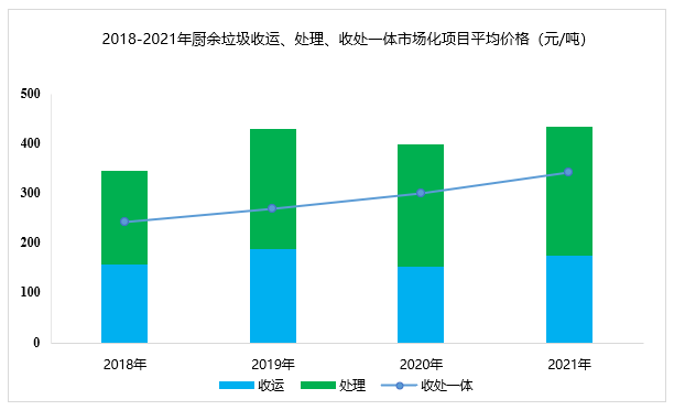 據(jù)E20數(shù)據(jù)庫統(tǒng)計,廚余垃圾收運市場的價格與地區(qū)相關(guān)性較大,平均收運價格145元/噸,處理環(huán)節(jié)的平均中標(biāo)價為239元/噸,收處一體化價格為340元/噸,略高于餐廚垃圾的平均水平,并且呈逐年上漲的趨勢。因此,隨著垃圾分類工作的全面推進(jìn)及中標(biāo)價格的上漲,預(yù)計“十四五”期間廚余垃圾處理市場將迎來新一輪推動。