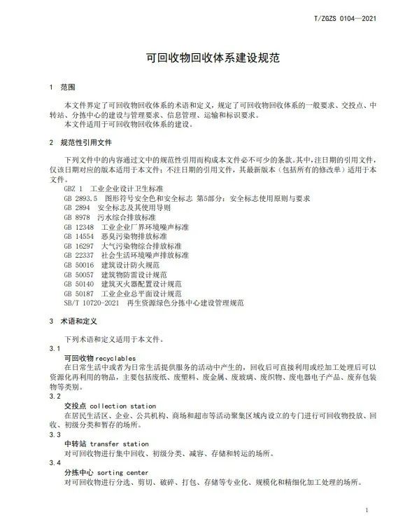 點擊“閱讀原文”在線瀏覽 團(tuán)體標(biāo)準(zhǔn)《可回收物回收體系建設(shè)規(guī)范》全文