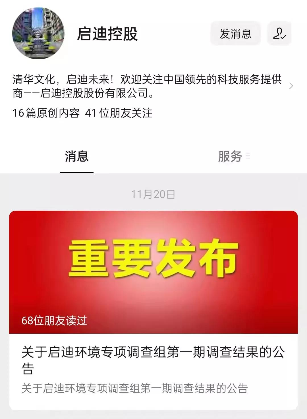 報道發(fā)出后,引發(fā)廣泛關(guān)注。10月26日,啟迪環(huán)境的大股東——啟迪控股成立“啟迪環(huán)境專項調(diào)查組”,專門對此事進行調(diào)查。