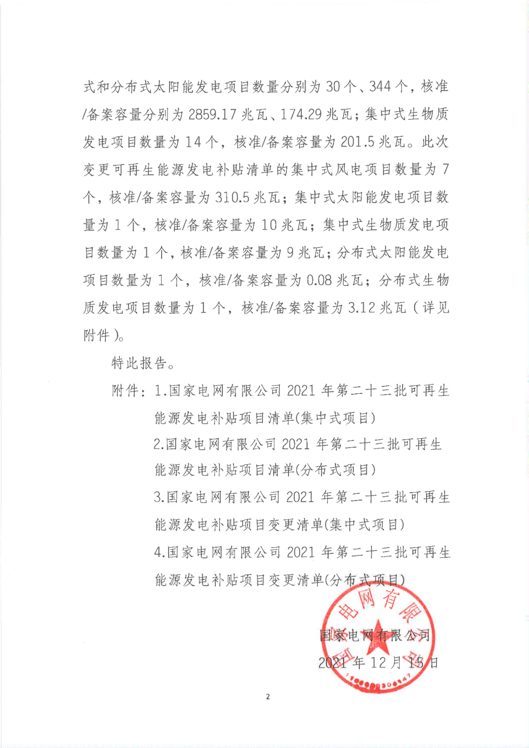 關于公布2021年第二十三批可再生能源發(fā)電補貼項目清單的公告