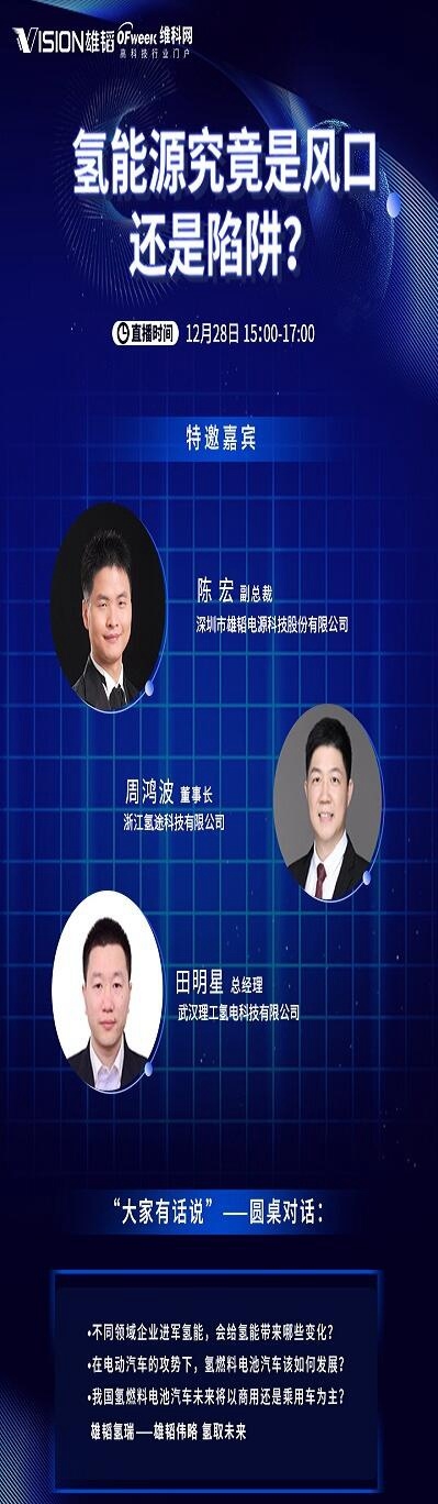 但是,當前氫燃料電池也存在成本高企、配套設(shè)施欠缺、技術(shù)不夠成熟等痛點。這一背景下,由專注于氫能電堆研發(fā)與生產(chǎn)的雄韜氫瑞主辦,OFweek維科網(wǎng)氫能承辦的“中國氫能發(fā)展研討會”,將于2021年12月28日在OFweek在線直播平臺舉辦。
