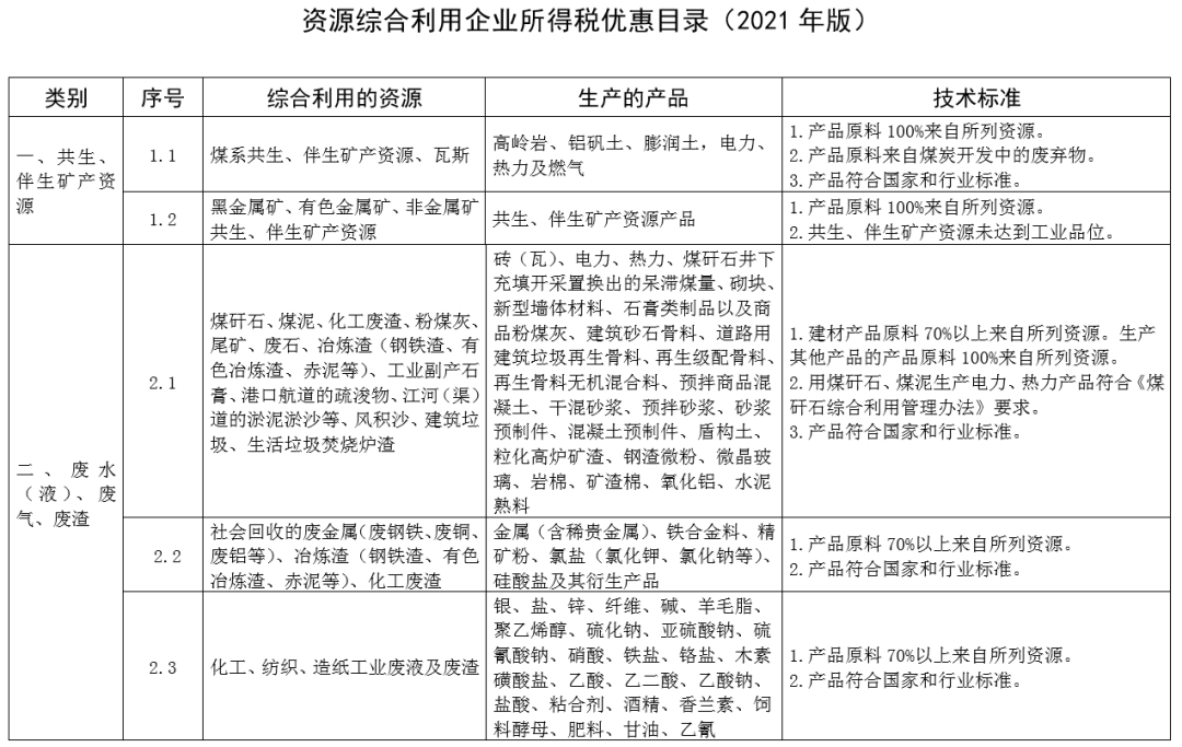 2.資源綜合利用企業(yè)所得稅優(yōu)惠目錄(2021年版)