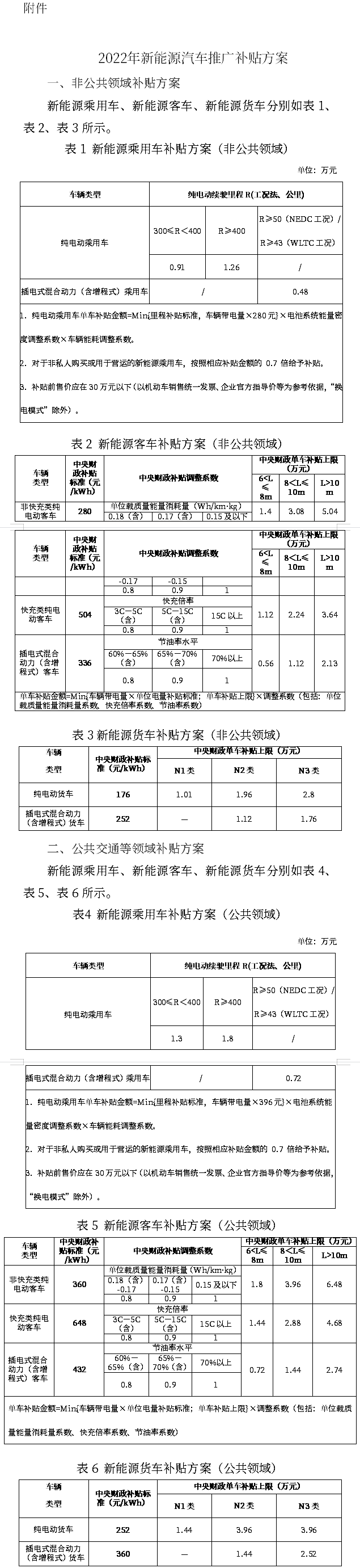 為進一步支持新能源汽車產(chǎn)業(yè)高質(zhì)量發(fā)展,做好新能源汽車推廣應用工作,現(xiàn)就2022年新能源汽車推廣應用財政補貼政策有關事項通知如下: