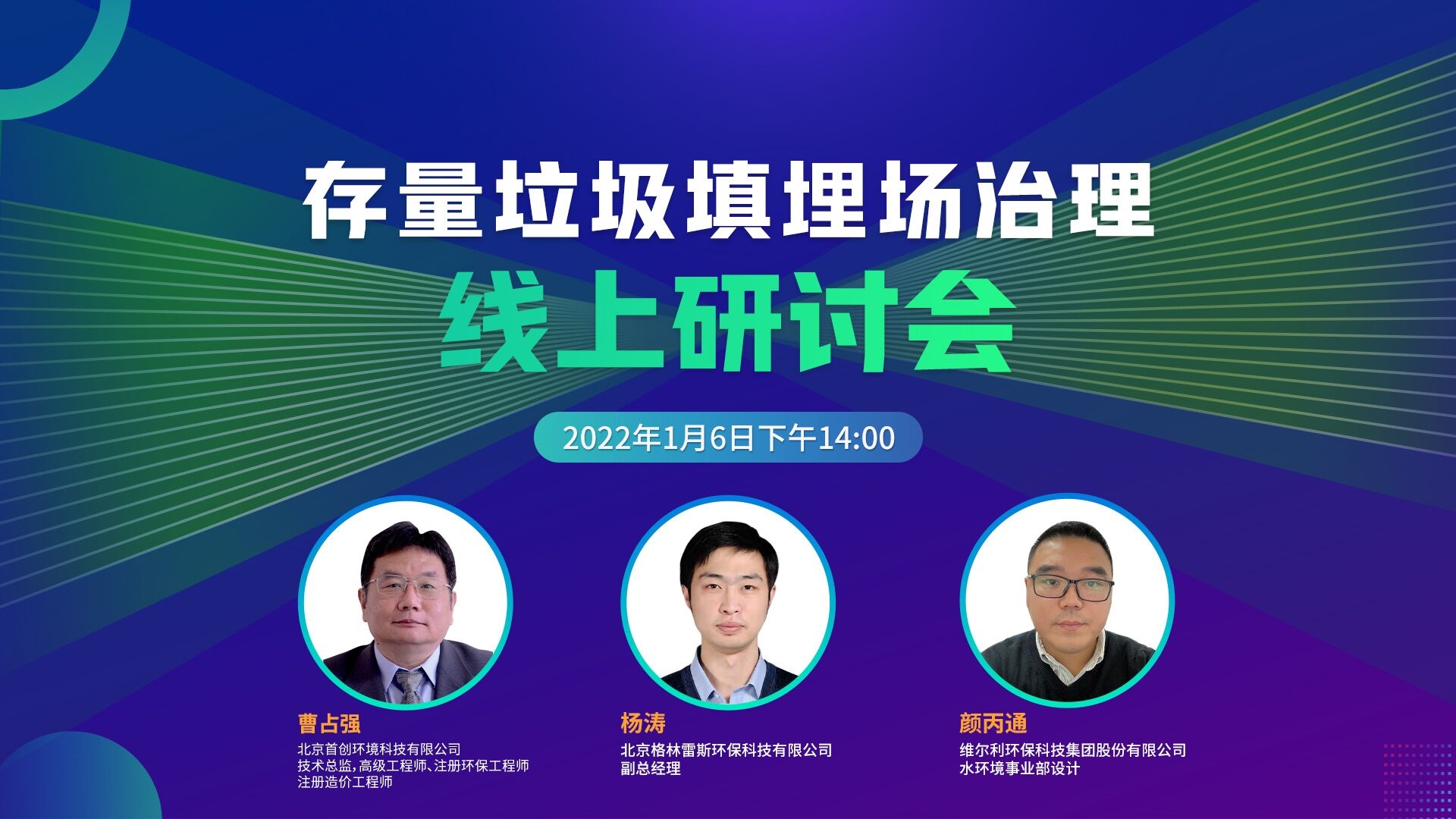 新的一年,踐行綠色環(huán)保理念從赴一場精彩紛呈的研討會開始!1月6日下午14:00,歡迎大家鎖定直播間,聚焦存量垃圾填埋場治理。