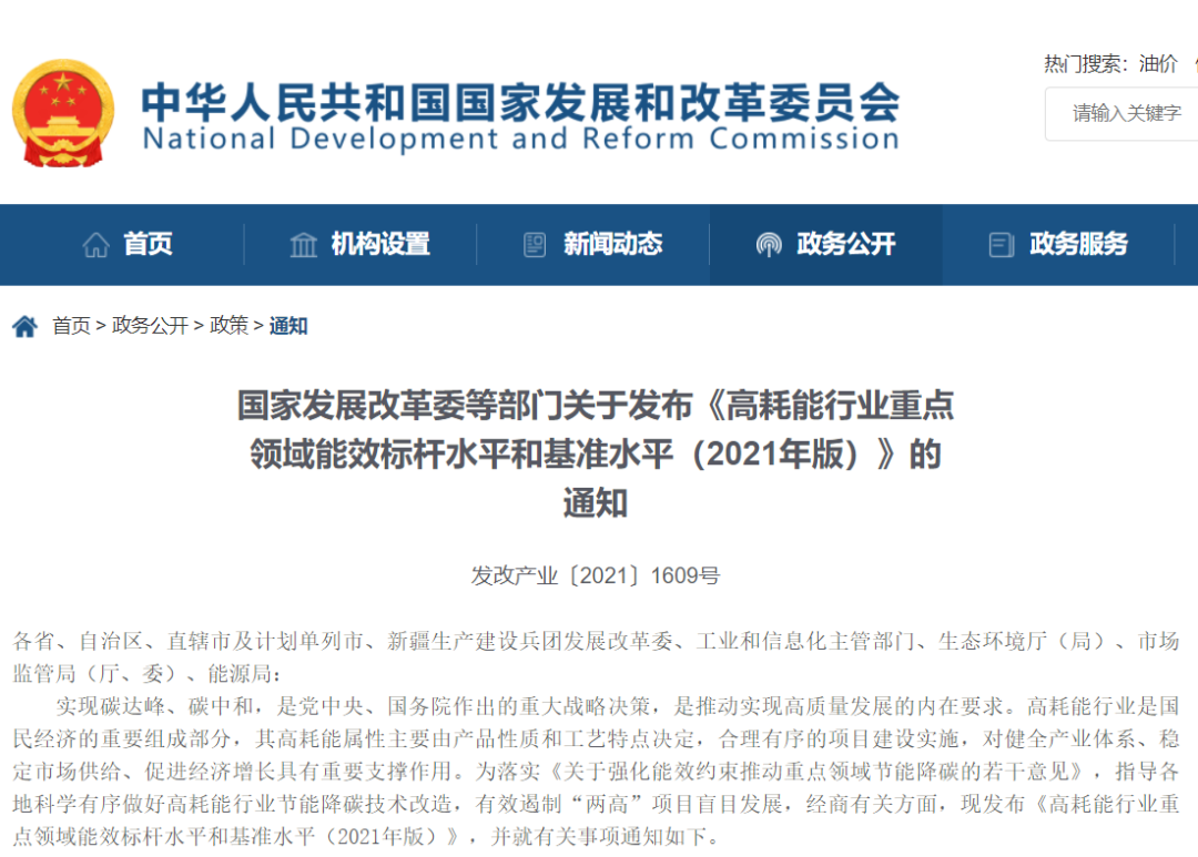 高耗能行業(yè)重點(diǎn)領(lǐng)域能效標(biāo)桿水平和基準(zhǔn)水平(2021年版)