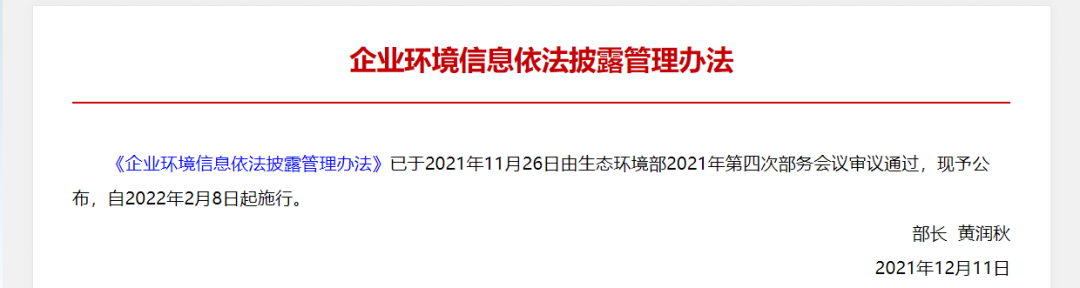 企業(yè)環(huán)境信息依法披露管理辦法