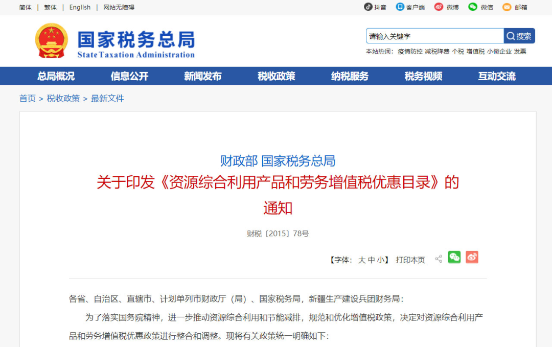 2、財(cái)政部、國家稅務(wù)總局關(guān)于印發(fā)《資源綜合利用產(chǎn)品和勞務(wù)增值稅優(yōu)惠目錄》的通知,財(cái)政部、國家稅務(wù)總局,2015-06-12