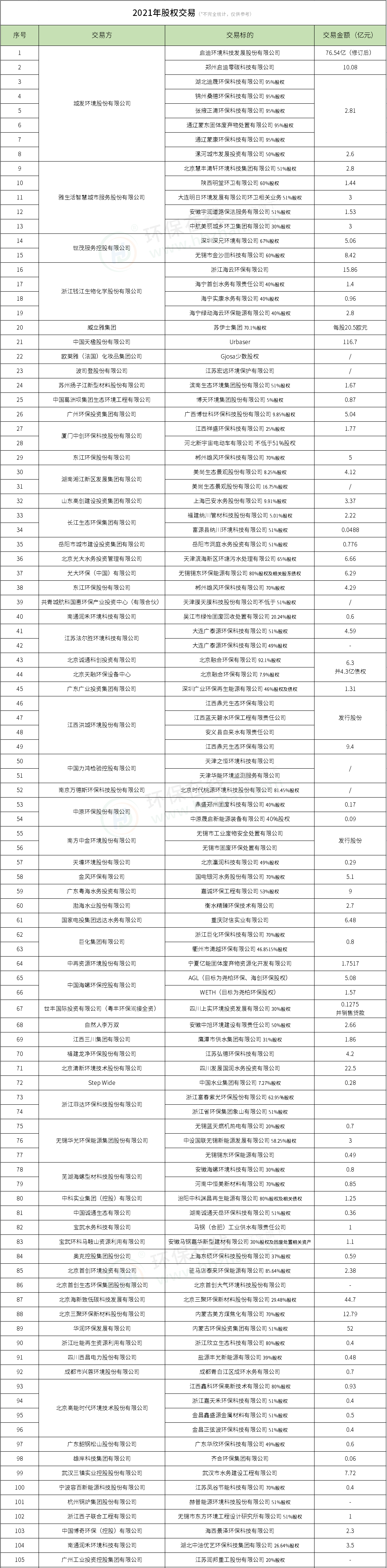 上半年,環(huán)保在線曾進行過半年度盤點,可回顧【環(huán)保并購年中報之大“購”特“購”和跨界“購”】以及【年中報【下】:2021上半年60+環(huán)保并購交易一覽】。