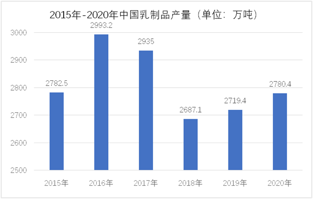 圖2:2015-2020年我國乳制品產(chǎn)量