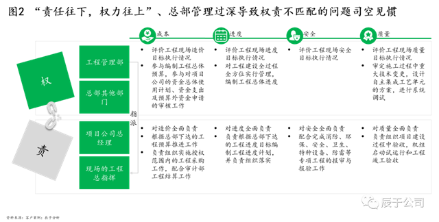 第一,項(xiàng)目公司和總部工程管理部的博弈:從合同關(guān)系上看,項(xiàng)目公司與外部單位是甲乙方關(guān)系,項(xiàng)目如何開展,作為獨(dú)立的法人單位,應(yīng)當(dāng)主要是項(xiàng)目公司決策,責(zé)任也應(yīng)該他們擔(dān),但事實(shí)上,總部的工程管理部作為直接上級(jí),勢必要對(duì)一些事項(xiàng)進(jìn)行管理,與項(xiàng)目公司成為共同的甲方,造成項(xiàng)目公司的責(zé)任與權(quán)力割裂。
