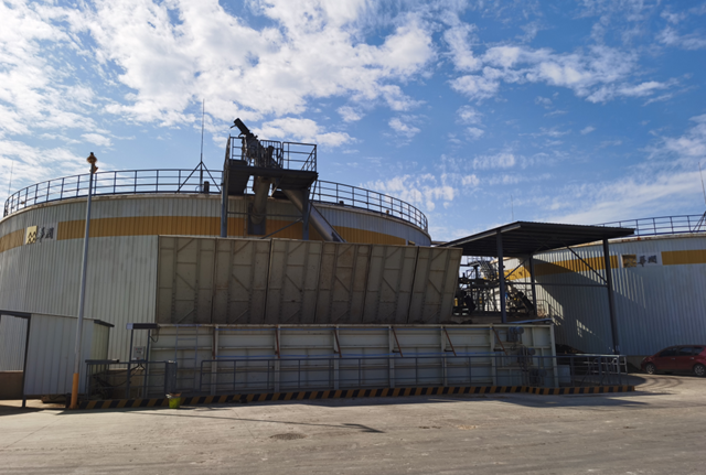 厭氧單元引進半干式高濃度厭氧發(fā)酵技術,結合國內原料特點進行了具有開創(chuàng)性的創(chuàng)新改進提升,建設半干式厭氧發(fā)酵罐3座,單體容積5,600m³。創(chuàng)新的半干式厭氧發(fā)酵工藝發(fā)酵濃度高、溫度高,對工況復雜的纖維類生物質原料兼容性好,容積產氣率較傳統(tǒng)濕法厭氧工藝提升30%——50%,具有較高的生產效率。秸稈類原料的浮渣結殼問題是世界級難題,已經成為制約此類原料厭氧應用的根本因素。隆安項目進行針對性發(fā)明創(chuàng)造,從根本上解決了秸稈在厭氧罐內漂浮和結殼的技術難題,成功為秸稈類生物質沼氣項目摸索出一套成熟可靠的厭氧發(fā)酵工藝。