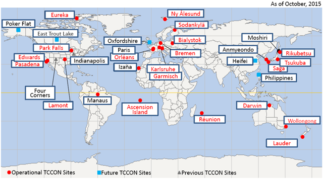 圖3. TCCON全球站點(diǎn)分布圖