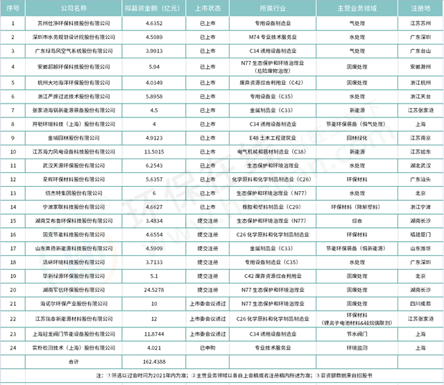 不過(guò),可以看到,24家企業(yè)擬募資金額合共也才162億出頭一點(diǎn),募資規(guī)模普遍較小,10億+的有海力風(fēng)電、軍信環(huán)保、海諾爾、瑞泰和冠龍閥門(mén)。不過(guò)從已上市的14家企業(yè)來(lái)看,天源環(huán)保募資凈額達(dá)到11.28億元,星輝環(huán)材達(dá)到25.09億元。