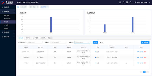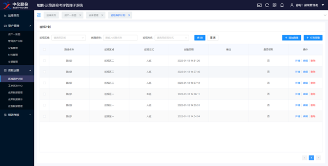 資產(chǎn)管理:加入設(shè)備、材料、車輛等資產(chǎn)管理臺(tái)賬,簡化設(shè)備申請(qǐng)、維修等使用流程,全面管控日常巡檢工作所需資產(chǎn)。