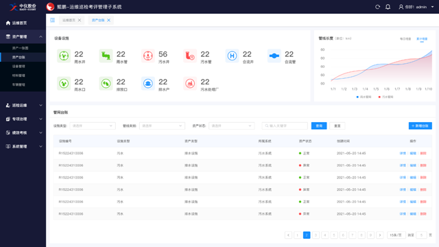 我們借助《鯤鵬-管網(wǎng)運(yùn)維巡檢考評(píng)管理子系統(tǒng)》,運(yùn)用現(xiàn)代化的手段,做到管網(wǎng)數(shù)據(jù)的賬冊(cè)化管理、巡視任務(wù)周期性分配、巡視成果及時(shí)上報(bào)、巡視團(tuán)隊(duì)科學(xué)管理、運(yùn)維成果績效考核。以日常巡檢養(yǎng)護(hù)為核心,以提質(zhì)增效為戰(zhàn)略目標(biāo),實(shí)現(xiàn)排水運(yùn)維工作的數(shù)字化、信息化、全面化、實(shí)時(shí)化,保障排水系統(tǒng)高質(zhì)量發(fā)展,構(gòu)建運(yùn)維建設(shè)新體系,引領(lǐng)高效運(yùn)維管理新時(shí)代。