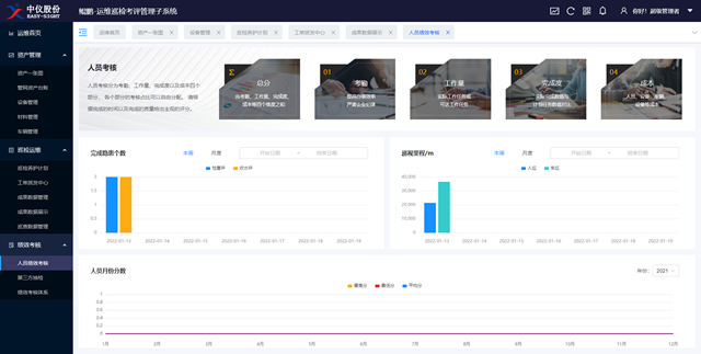 績效考核:依據(jù)考核人員考勤、工作量以及完成情況等實(shí)現(xiàn)人員的績效考核;依據(jù)時(shí)間跨度、隱患類型、隱患區(qū)域來進(jìn)行抽樣檢查,考察整個(gè)運(yùn)維效果。