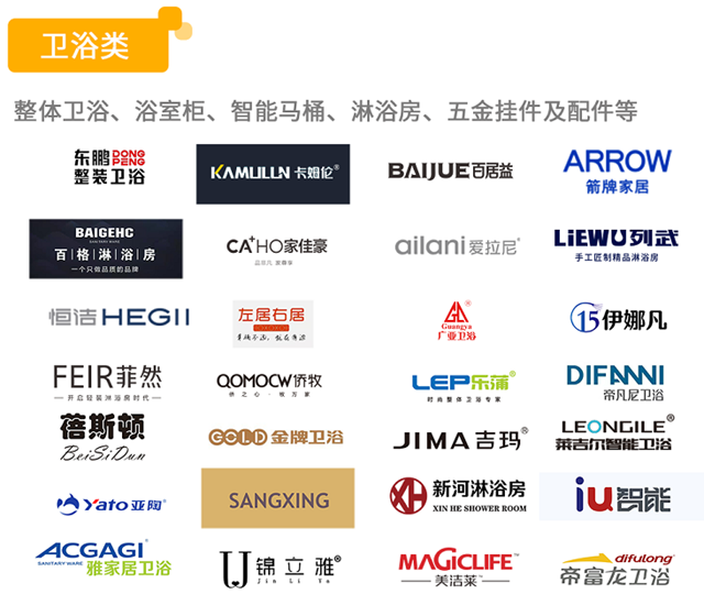 衛(wèi)浴館規(guī)劃在4號(hào)館集中展示,該主題展匯聚了“粵派”、“川派”的整體衛(wèi)浴、浴室柜、淋浴房等品牌企業(yè)參展,包括:東鵬潔具、德國(guó)VMA淋浴房、百格淋浴房、列武淋浴房、金牌衛(wèi)浴、恒潔衛(wèi)浴、箭牌衛(wèi)浴、愛(ài)拉尼、帝凡尼藝術(shù)盆、皓霖淋浴房、現(xiàn)代衛(wèi)浴、樂(lè)鵬衛(wèi)浴、安彼衛(wèi)浴、歐陸衛(wèi)浴、百居益整體衛(wèi)浴、IU智能衛(wèi)浴、皇納衛(wèi)浴、左居右居浴室柜、貝多智能馬桶、統(tǒng)籌智能馬桶、媧普地漏、金德?tīng)柡缥芈?、鏵麗得龍頭、萬(wàn)師傅、川奇智能鏡等等共計(jì)183家衛(wèi)浴企業(yè)報(bào)名參展,各廠家將帶來(lái)最新產(chǎn)品和前沿技術(shù)。