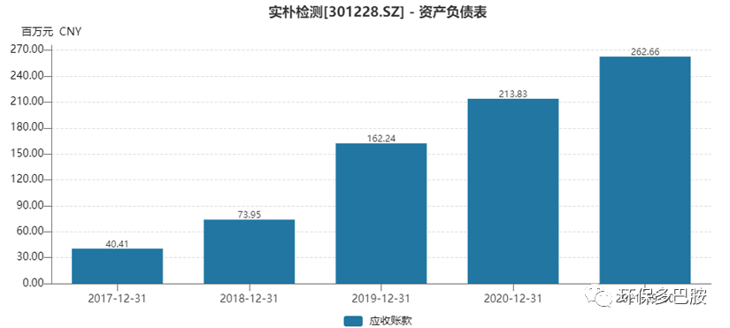 2、應(yīng)收及應(yīng)收賬款逾期金額持續(xù)增加,行業(yè)資金來源仍待開拓盡管土壤檢測為2B模式,但公司應(yīng)收賬款快速增加。報(bào)告期各期末,公司的應(yīng)收賬款余額分別為7,950.85 萬元、17,662.95 萬元、24,459.04 萬元和 26,794.45 萬元,占當(dāng)期主營業(yè)務(wù)收入的比例分別為 44.74%、 59.30%、68.20%及 163.74%;報(bào)告期各期末,公司應(yīng)收賬款逾期金額分別為31.08 萬元、1,712.38 萬元、5,874.42 萬元及 6,586.51 萬元。