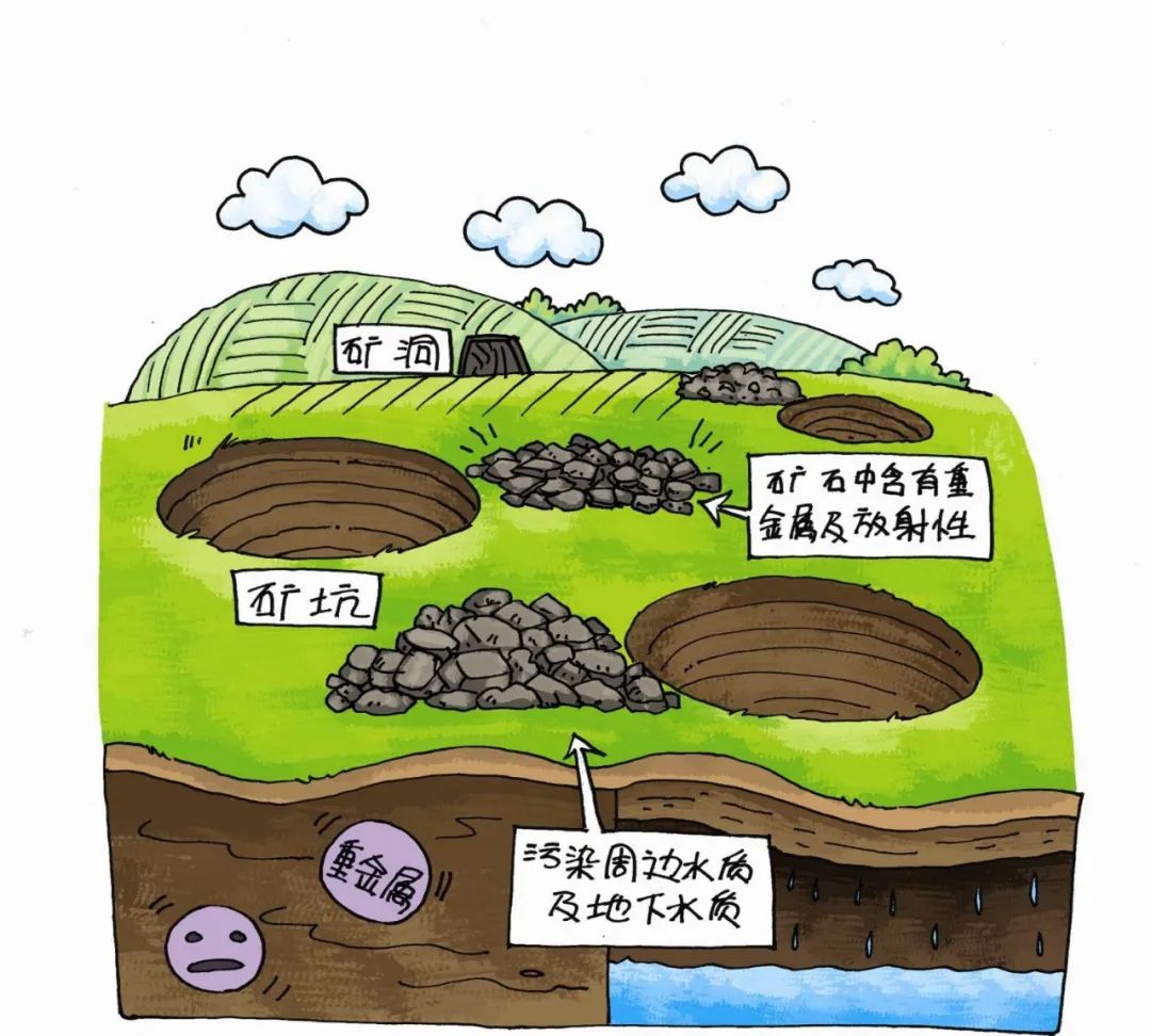 礦山固體廢物是在采礦和選礦過程中產(chǎn)生的沒有工業(yè)價(jià)值的礦物,例如尾礦、廢石以及煤矸石等。這些廢物通常都含有重金屬等污染物。另外,還會(huì)有選礦過程加入的一些表面活性劑、酸或者堿等危害環(huán)境的成分。有些礦山固體廢物還有一定的放射性。它們通常會(huì)堆在礦場(chǎng)附近,既侵占良田,又在長(zhǎng)期的風(fēng)化及雨水的淋洗下,使周邊的地下水質(zhì)變壞,特別是酸性水或含有重金屬的污水,污染周邊環(huán)境。