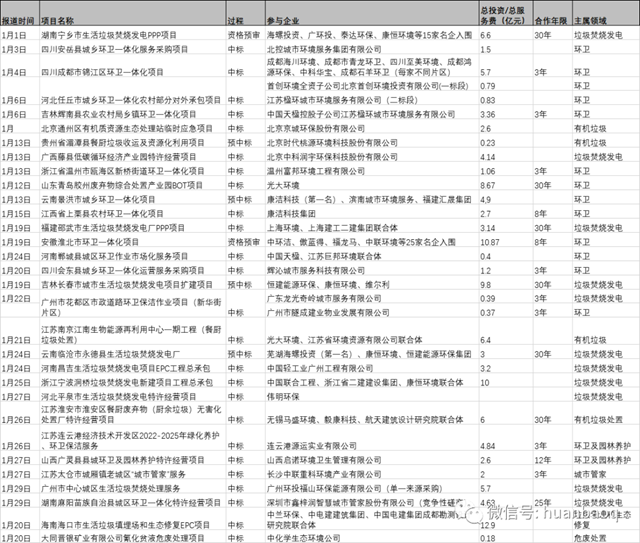 1月,固廢市場共釋放出垃圾焚燒項(xiàng)目11個(gè),涉及投資額超過50億。