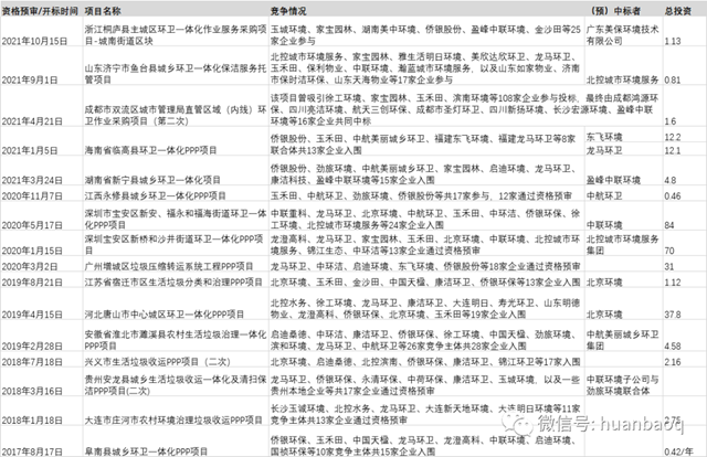 ▼表2 2017年至今部分競爭激烈的環(huán)衛(wèi)項(xiàng)目列表