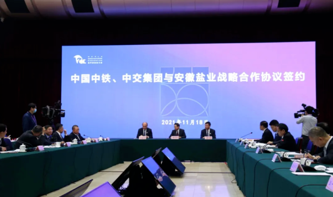 然而在2021年11月18日,中國中鐵、中交集團與安徽省鹽業(yè)投資控股集團有限公司(下稱“安徽鹽業(yè)集團”)簽訂戰(zhàn)略合作協(xié)議,決定在安徽鹽業(yè)集團的基礎(chǔ)上,籌組安徽省生態(tài)環(huán)境產(chǎn)業(yè)集團。