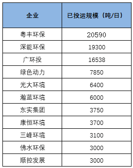 49350噸/日項(xiàng)目在建、待建,廣環(huán)投、深能環(huán)保領(lǐng)跑