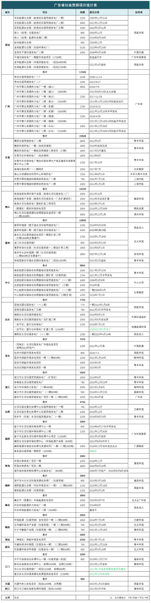 【附】廣東省垃圾焚燒項(xiàng)目統(tǒng)計(jì)表