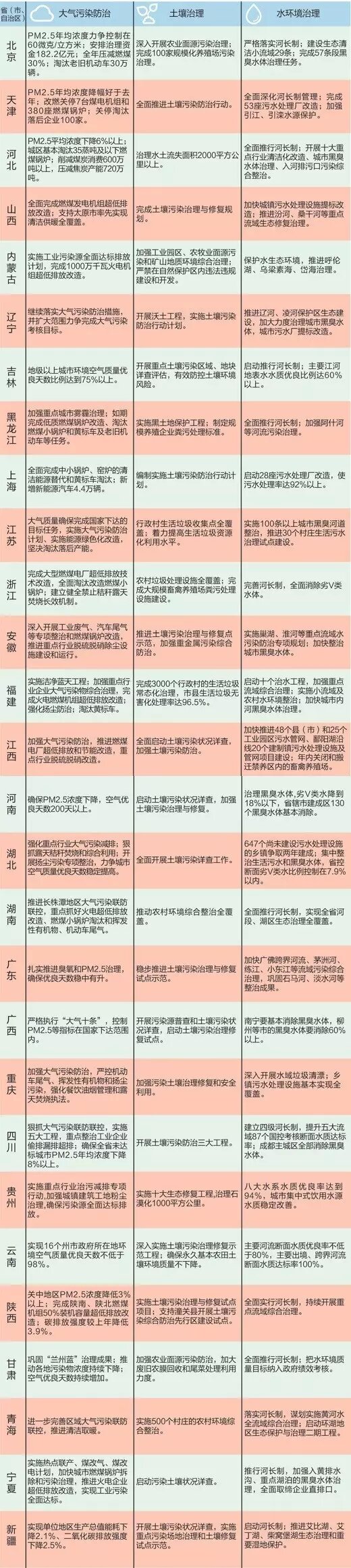 部分省份2017年環(huán)境治理工作摘要,資料來源為相關(guān)?。ㄊ小⒆灾螀^(qū))今年的政府工作報告。 部分省份2017年環(huán)境治理工作摘要,資料來源為相關(guān)?。ㄊ小⒆灾螀^(qū))今年的政府工作報告。