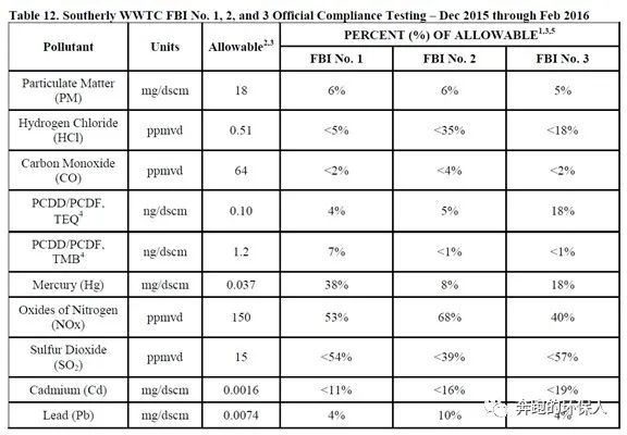 2014年的煙氣排放檢測(cè)數(shù)據(jù)顯示,煙氣中的污染物主要是汞和SO2無(wú)法滿足2016年生效的新標(biāo)準(zhǔn)排放限值,以下每個(gè)數(shù)據(jù)都是三次測(cè)試的平均值: