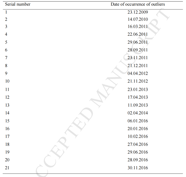 EUA市場回報率序列中的離群值如圖3所列,觀察對應(yīng)時期特點得到,離群值可能受戰(zhàn)爭、自然災(zāi)害、政治沖突、經(jīng)濟(jì)崩潰等事件影響造成。