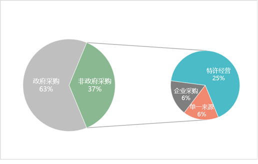 在采取“非政府采購(gòu)”方式的6個(gè)區(qū)縣中,其中:采取“特許經(jīng)營(yíng)”方式的區(qū)縣有4個(gè),采取“企業(yè)采購(gòu)”和“單一來源采購(gòu)”方式的區(qū)縣各1個(gè)。