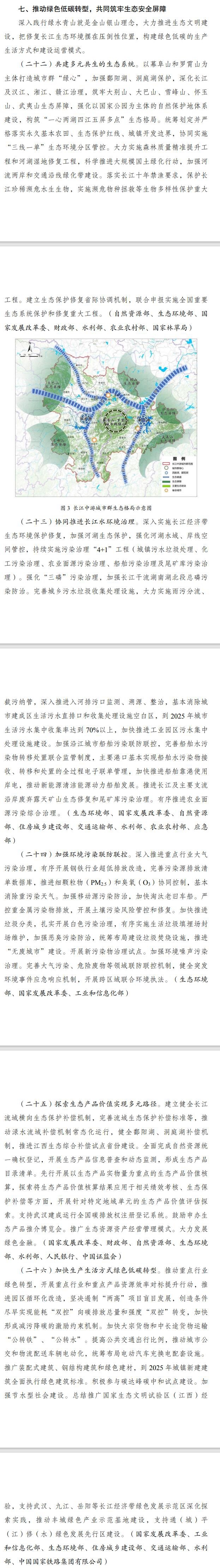 實(shí)施方案要求,優(yōu)化國(guó)土空間開發(fā)保護(hù)格局,推動(dòng)生態(tài)共保環(huán)境共治,筑牢長(zhǎng)江中游生態(tài)屏障,加快建立生態(tài)產(chǎn)品價(jià)值實(shí)現(xiàn)機(jī)制,著力改善城鄉(xiāng)人居環(huán)境,積極落實(shí)碳達(dá)峰碳中和目標(biāo)任務(wù),促進(jìn)長(zhǎng)江經(jīng)濟(jì)帶綠色發(fā)展。