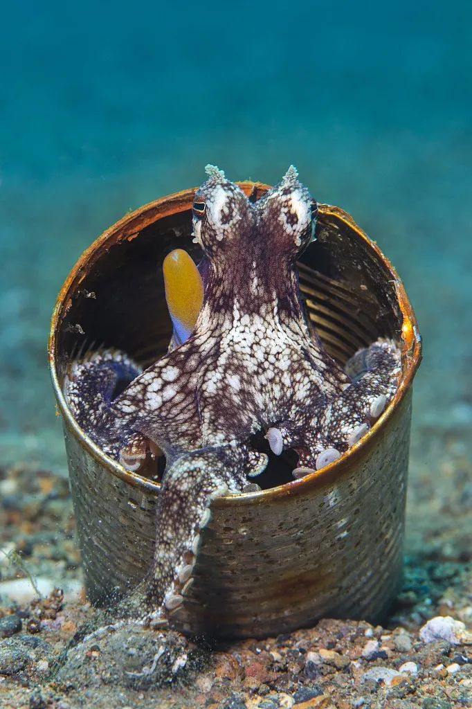在空罐子里的脈狀章魚。