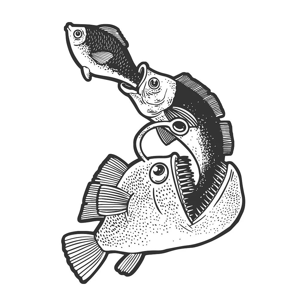 海洋食物鏈手繪圖。
